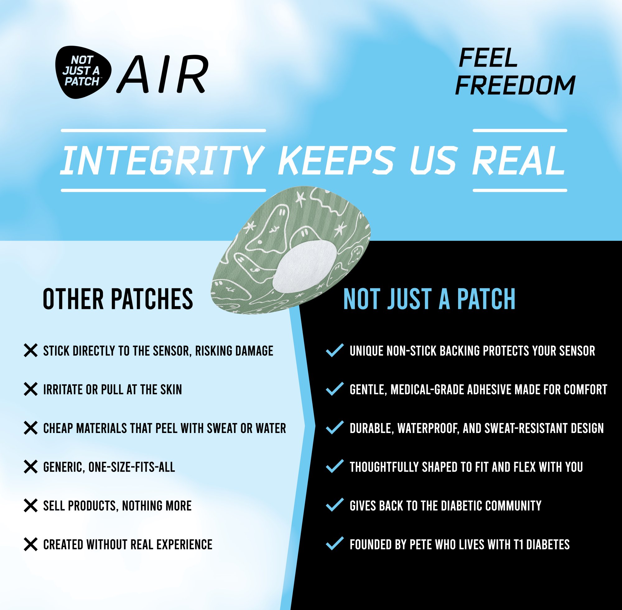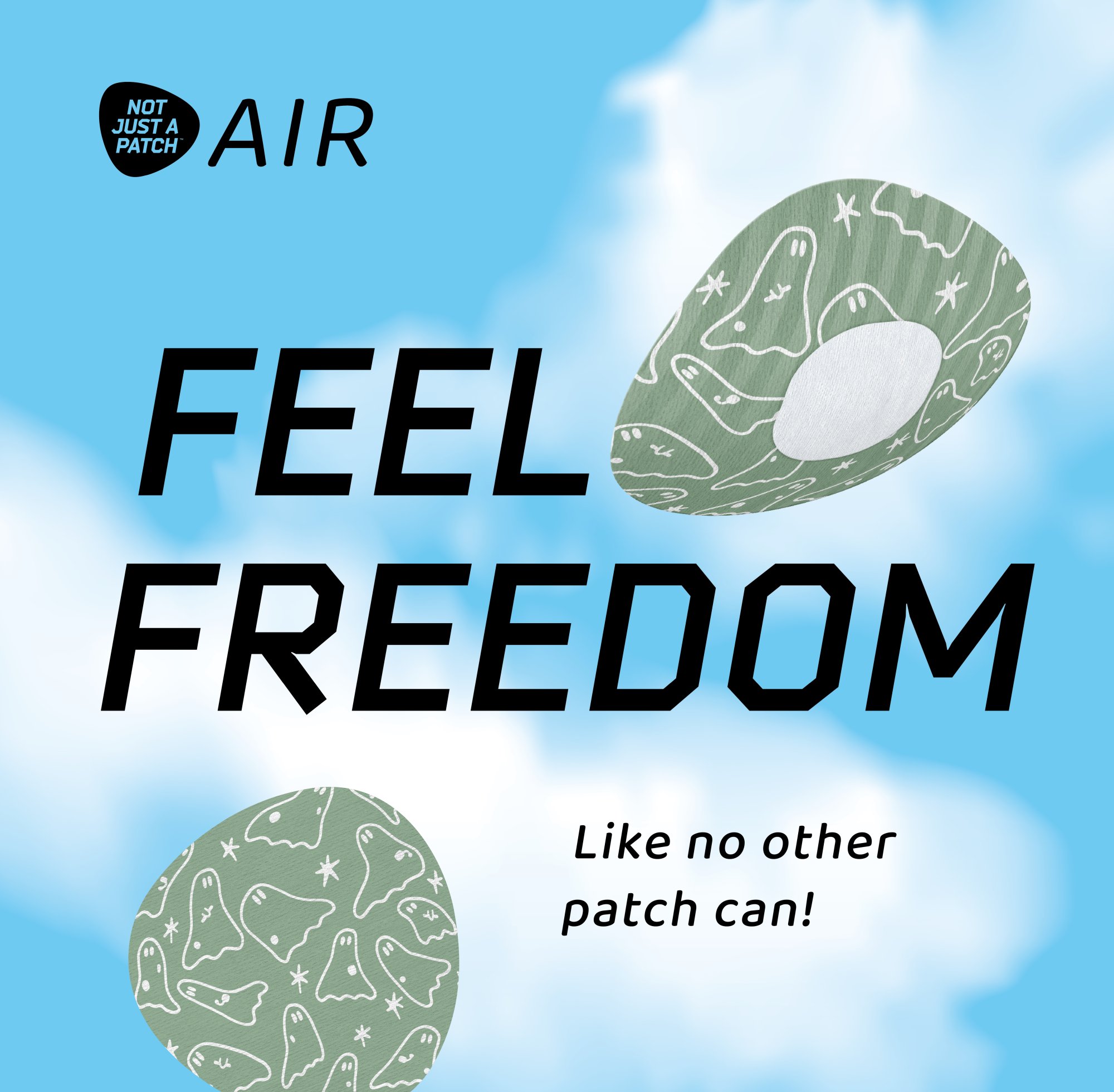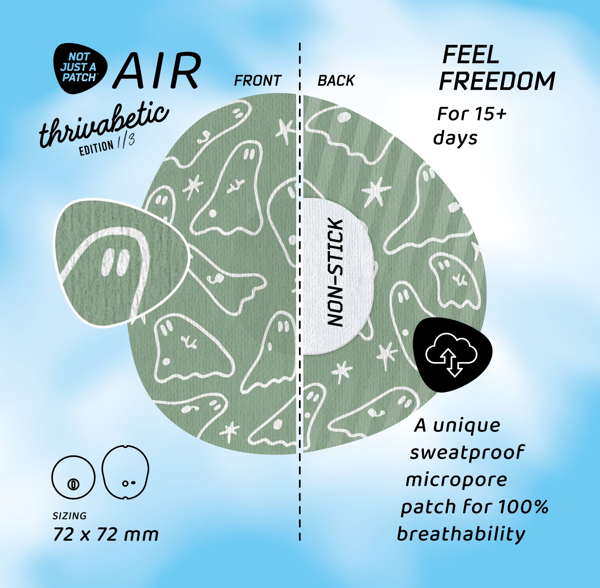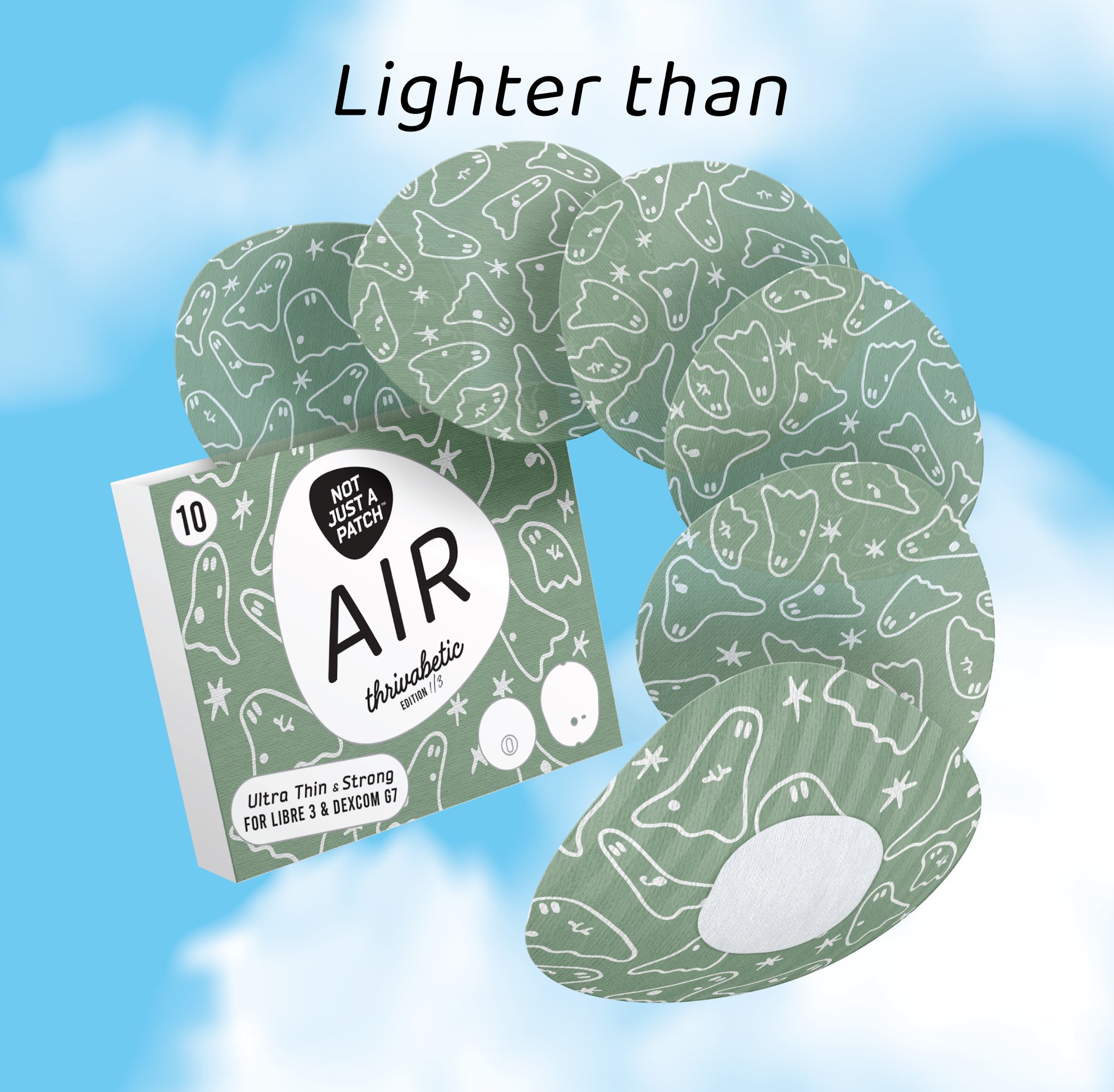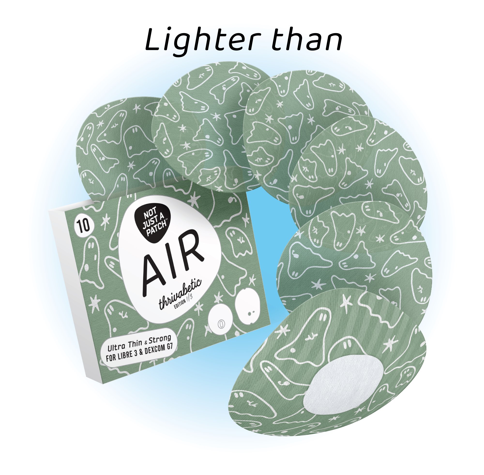 NJAP x Thrivabetic – Air Patches for Dexcom G7, Libre 3, ONE+, Stelo CGM | T1D Ghosty Mode | 10 packs