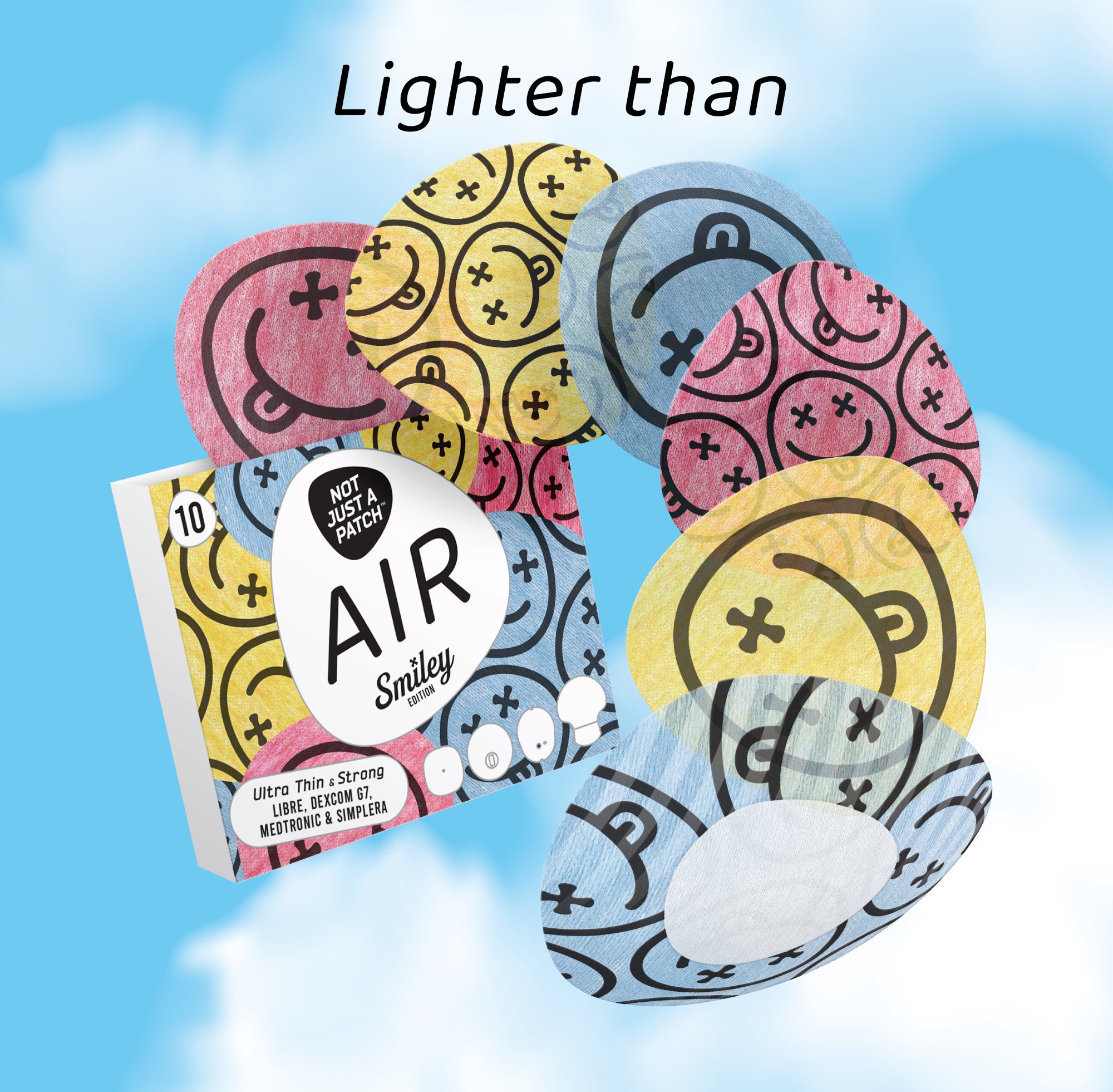 Air Smiley Patches for Freestyle Libre 1 and 2, Medtronic, Lingo, Simplera – Multicolor – 10 pack