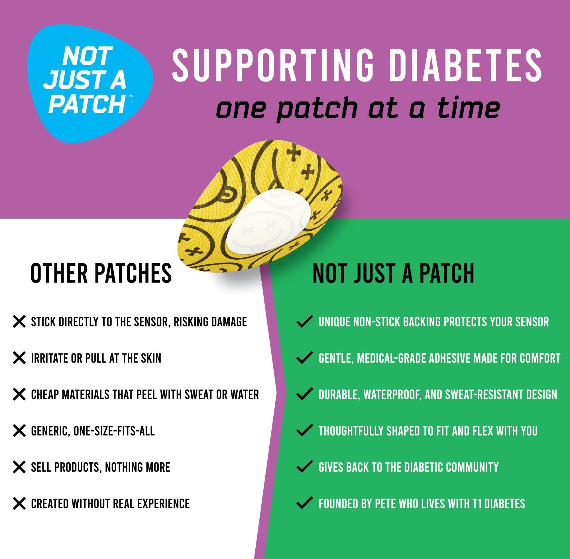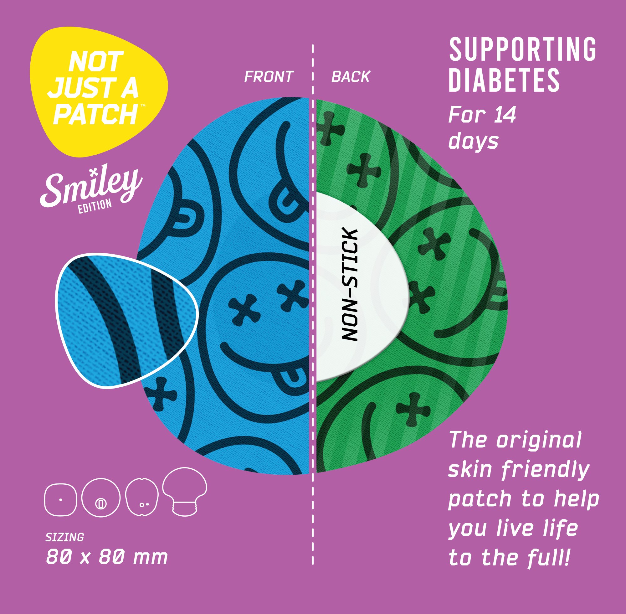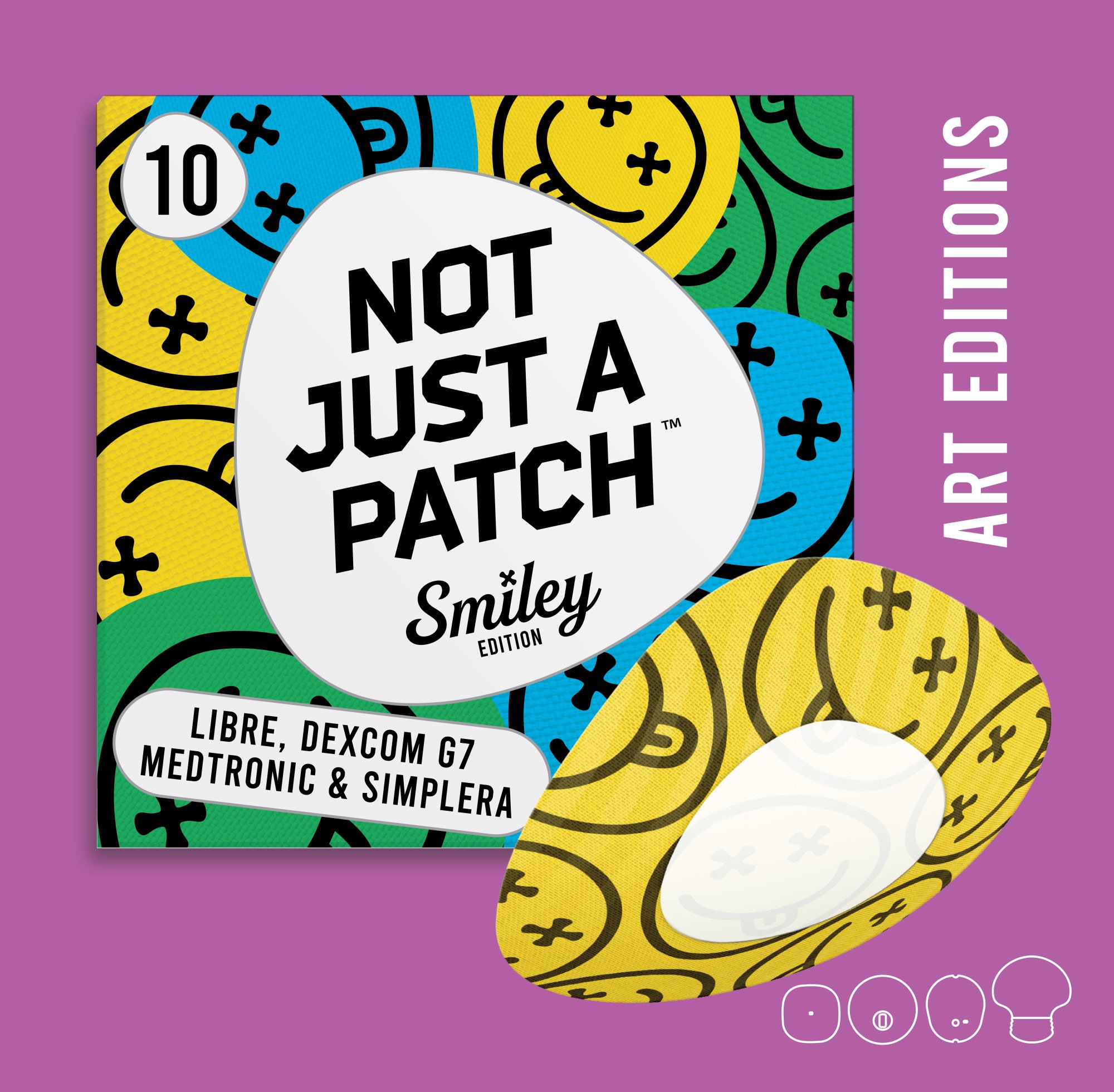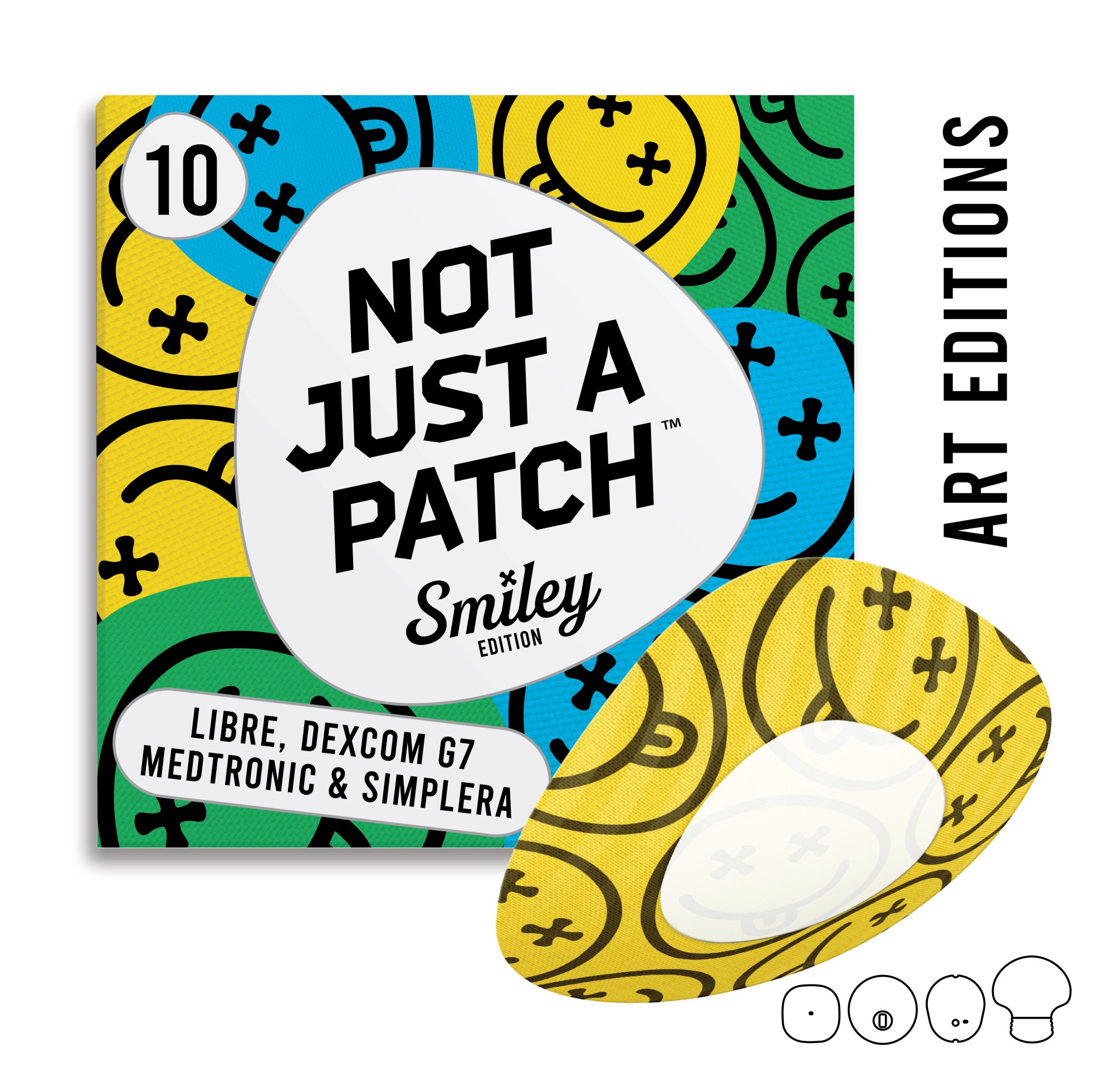 - Not Just a Patch Smiley Original for Abbott Freestyle Libre 1 and 2, Medtronic, Lingo, Simplera CGM sensors;